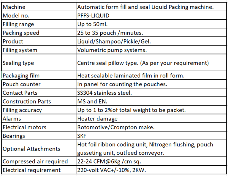 Automatic Pneumatic Form Fill and Seal Pouch Packing Machine to Pack Liquid Items Like Shampoo, Gels, Hand Sanitizer, Chocolate Syrup etc